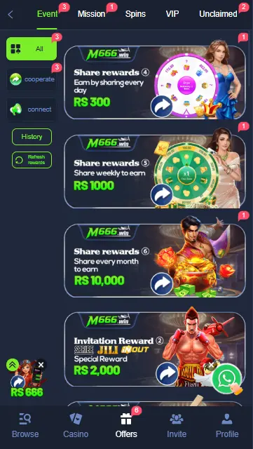 The M666 app is completely free to download. You don’t need to pay anything to start; simply install it and sign up to begin playing.